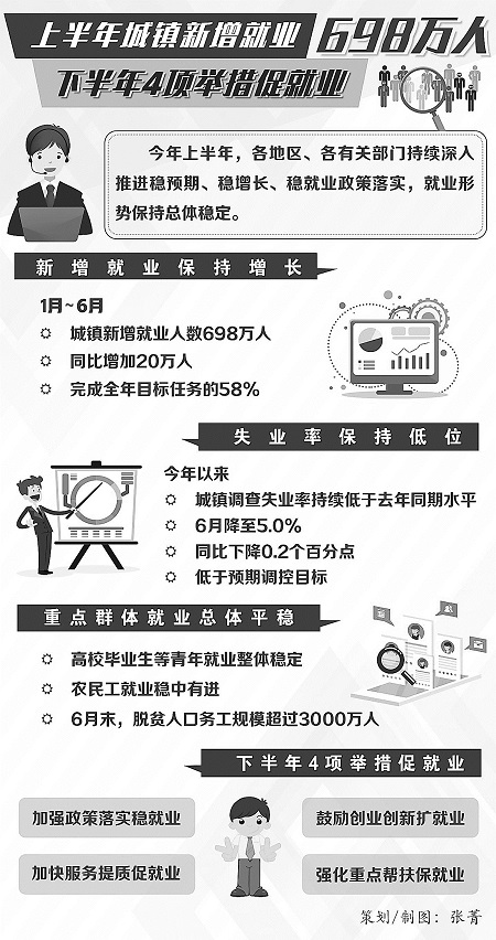 上半年城鎮新增就業698萬人 下半年4項舉措促就業