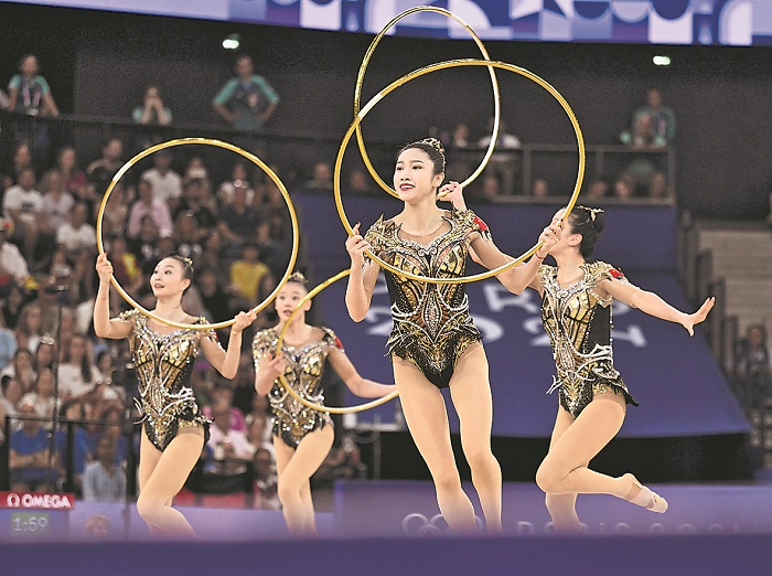 當(dāng)天的藝術(shù)體操賽場(chǎng)也傳來捷報(bào)。由丁欣怡、郭崎琪、郝婷、黃張嘉洋和王瀾靜組成的中國(guó)隊(duì)以69.800的總分奪冠,奪得中國(guó)藝術(shù)體操隊(duì)史上首枚奧運(yùn)會(huì)金牌。