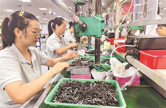 近日,位于重慶萬(wàn)盛經(jīng)開(kāi)區(qū)南桐鎮(zhèn)平山工業(yè)園區(qū)某生產(chǎn)車間,“媽媽?shí)彙眴T工在生產(chǎn)線上進(jìn)行組裝作業(yè)。近年來(lái),萬(wàn)盛經(jīng)開(kāi)區(qū)總工會(huì)推動(dòng)民營(yíng)企業(yè)做好建會(huì)入會(huì)工作,指導(dǎo)企業(yè)建立靈活用工機(jī)制,針對(duì)鄉(xiāng)村留守婦女專門開(kāi)設(shè)“媽媽?shí)彙保确奖闼齻冋疹櫦彝ビ执龠M(jìn)就業(yè)。本報(bào)通訊員 曹永龍 攝