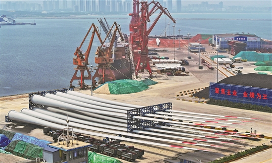 山東港口蓬萊港是中國北方重要風電設備作業母港,2022年以來,蓬萊港結合當地海工裝備產業快速發展需求,確立了打造北方主要風電設備出口母港和重要海上風電中轉港的目標,逐步形成了涵蓋塔筒、葉片、主機及相關配件的風電產業鏈全線產品一站式配艙出海業態。