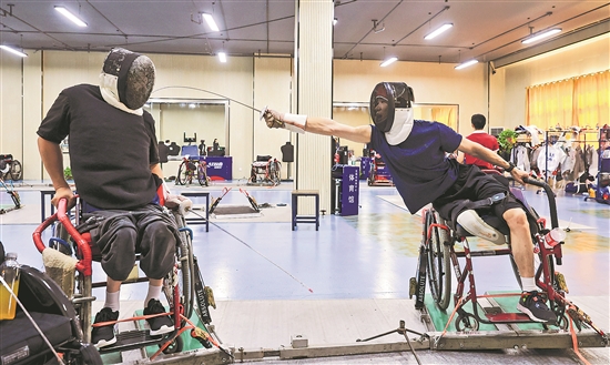 近日,中國輪椅擊劍集訓隊(江蘇組)在江蘇南京的江蘇省殘疾人文化體育指導中心集訓,備戰(zhàn)即將舉行的巴黎殘奧會。