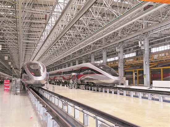 圖為在中車長客國鐵事業部制造中心拍攝的復興號智能動車組。