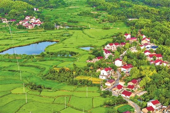 8月15日,安徽省蕪湖市繁昌區孫村鎮八分村,錯落有致的民居和山巒、田園、道路等相映成景,構成一幅美麗的田園生態畫卷。近年來,繁昌區結合美麗鄉村建設,推進村容村貌整治,優化鄉村生態環境,打造生態宜居的和美鄉村。肖本祥 攝/視覺中國