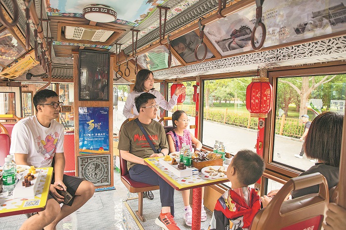 8月17日,大美中軸線觀光巴士在北京中軸線開通。該線路巴士均采用新型仿古鐺鐺車,游客可全面游覽15處古都之脊的文化遺產,體驗壯美有序、古今交融的城市畫卷。當日,北京旅游集散中心共優化開通了8條以大美中軸、潮朝陽等為主題的觀光巴士線路,旨在提供全新的旅游觀光體驗,為北京文旅市場注入新活力。