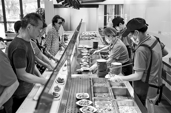 近年來,浙江省嘉興市南湖區堅持以推進“一老一小”服務體系為重點,著力完善托育照護服務體系和養老服務體系。截至目前,全區已建成并運營“幸福食堂”9家,建成備案托育機構58家。圖為老人在幸福食堂取餐。 新華社記者 徐昱 攝