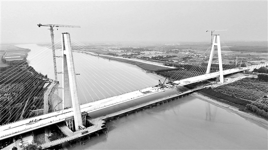 黃河三角洲最大跨度A字型斜拉橋合龍