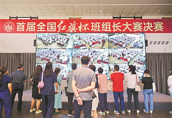 8月20日,首屆全國“紅旗杯”班組長大賽決賽正在舉行,各賽道的領隊們在觀賽區大屏幕前關注賽場中的選手。