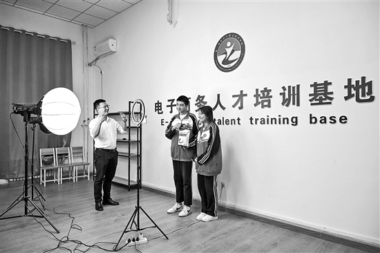 9月10日,在新疆阿拉爾職業(yè)技術(shù)學(xué)校,95后年輕教師李斌傲(左)在實(shí)訓(xùn)室指導(dǎo)學(xué)生。