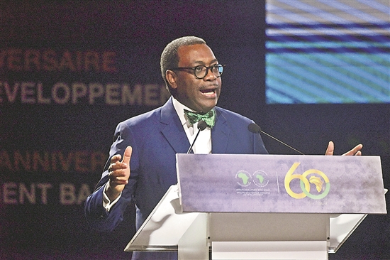 圖為當地時間9月10日,在科特迪瓦經濟首都阿比讓,非洲開發銀行行長阿德西納在非洲開發銀行成立60周年慶祝活動上發言。 新華社發 (伊萬·宋 攝)