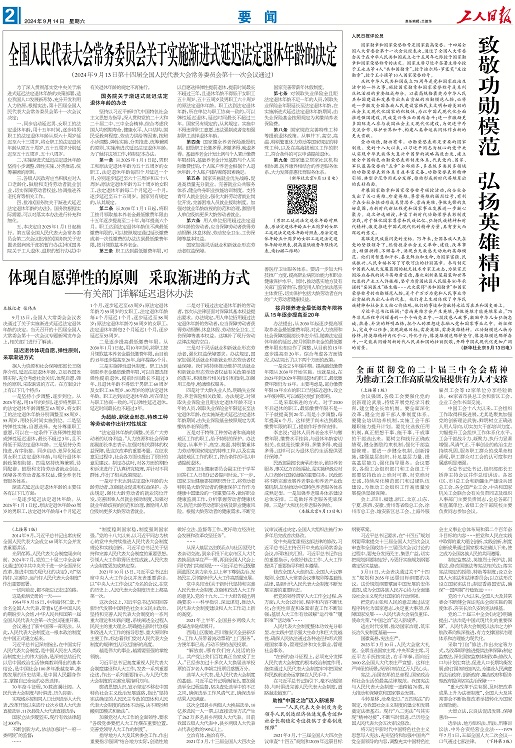 工人日報 2024年09月14日 星期一