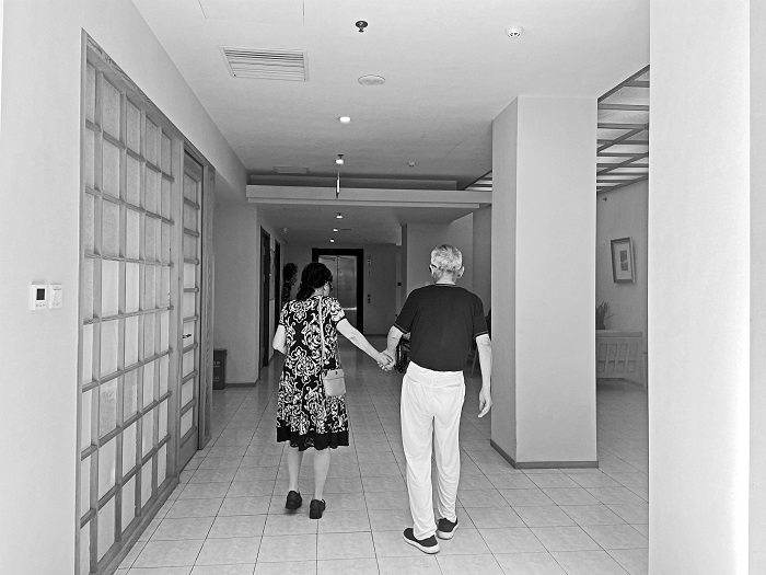 如今,老伴已經住進了養老院,可“照護”早已成了魏秀云的習慣。每天早上6點,魏秀云都會從家里出發,倒4班公交車花上一個半小時去養老院陪老伴散步,“散步是我倆年輕時候最喜歡的事情,我想陪他多走走。今年我也79歲了,走不了多久了”。