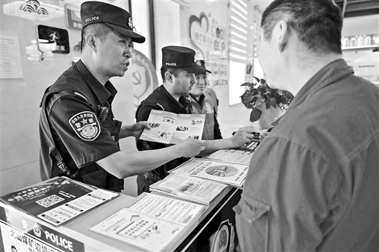 近日,在新疆準(zhǔn)東經(jīng)濟(jì)技術(shù)開發(fā)區(qū)北山煤礦礦區(qū)民警暖陽(yáng)服務(wù)站,北山煤礦邊境派出所民警聯(lián)合“北山義警”服務(wù)隊(duì)向轄區(qū)職工發(fā)放反詐宣傳資料。當(dāng)?shù)嘏沙鏊ㄟ^(guò)科技智慧與多方協(xié)同治理,建立“機(jī)制+專業(yè)+大數(shù)據(jù)”協(xié)同型、數(shù)字型、主動(dòng)型生態(tài)警務(wù)運(yùn)行系統(tǒng),賦能千里礦區(qū)安全高質(zhì)量發(fā)展。新華社記者 丁磊 攝