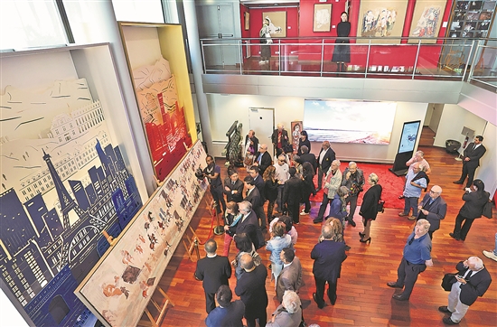 當地時間9月18日,在法國巴黎中國文化中心,嘉賓在展覽上參觀。新華社記者 高靜 攝