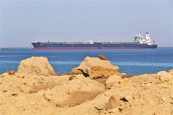 圖為當?shù)貢r間10月8日在埃及蘇伊士灣拍攝的行駛中的船只。新華社記者 隋先凱 攝