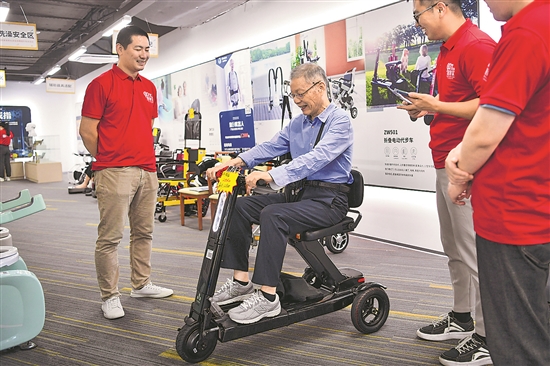 10月12日,一名老人在體驗(yàn)折疊電動(dòng)代步車。據(jù)了解,為滿足老年人居家適老化改造需求,提升老年人居家生活環(huán)境和品質(zhì),深圳將由民政局統(tǒng)籌,利用超長(zhǎng)期特別國(guó)債資金支持,資助深圳戶籍60歲及以上、有需求及困難的老年人購(gòu)買智慧化、智能化的適老產(chǎn)品。 新華社記者 梁旭 攝