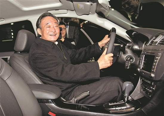 2010年1月30日,吳邦國同志在上海汽車集團股份有限公司技術中心察看新能源樣車。新華社記者 姚大偉 攝