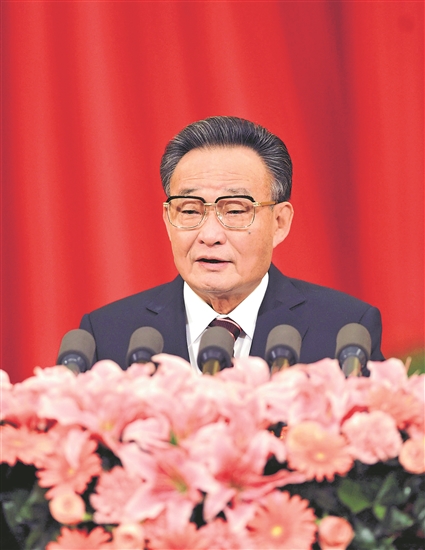 2002年11月,吳邦國同志在中共十六屆一中全會上當選為中央政治局委員、常委。2003年3月,在十屆全國人大一次會議上,他當選為全國人民代表大會常務委員會委員長,同月任全國人大常委會黨組書記。2007年10月,他在中共十七屆一中全會上再次當選為中央政治局委員、常委。2008年3月,在十一屆全國人大一次會議上,他再次當選為全國人民代表大會常務委員會委員長,同月任全國人大常委會黨組書記。他認真貫徹落實黨中央決策部署,堅持正確政治方向,依法履行職責,不斷增強工作實效,進一步豐富和發展人民代表大會制度的理論和實踐,為發展社會主義民主、健全社會主義法制作出重要貢獻。他強調,發展社會主義民主政治,必須把堅持黨的領導、人民當家作主和依法治國有機統一起來,堅持和完善人民代表大會制度這一根本政治制度,必須堅持黨的領導,決不能削弱黨的領導、脫離黨的領導、放棄黨的領導,決不能搞西方那種多黨制、議會制,中國對自己選擇的政治發展道路要理直氣壯地宣傳,堅決抵制各種錯誤思潮影響。