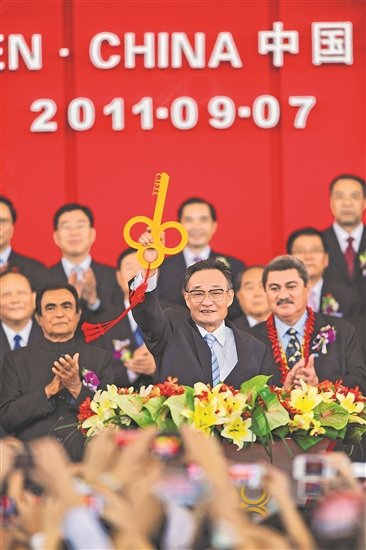 二〇一一年九月七日,吳邦國同志在福建廈門出席第十五屆中國國際投資貿易洽談會開館式。新華社記者 張國俊 攝
