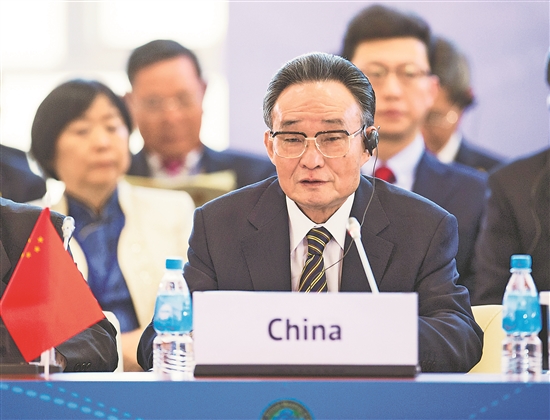 2013年1月28日,吳邦國同志在俄羅斯符拉迪沃斯托克出席亞太議會論壇第21屆年會,并作題為《堅持和平發展 促進合作共贏》的主旨發言。新華社記者 王曄 攝