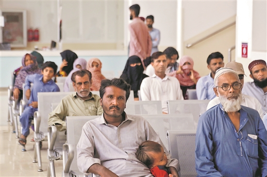 圖為近日在巴基斯坦西南部俾路支省瓜達爾,當地民眾在中巴友誼醫院的門診大廳候診。新華社發(艾哈邁德·卡邁勒 攝)