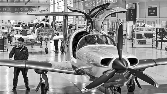 11月3日,在位于山東萊西市的青島萬豐鉆石飛機制造有限公司,工人在裝配飛機。