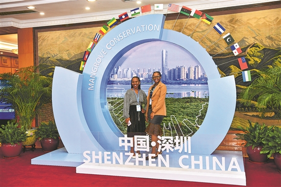 11月6日,兩位嘉賓在會(huì)場外合影留念。當(dāng)日,國際紅樹林中心成立協(xié)定在深圳正式簽署,首批18個(gè)成員國代表共同簽署協(xié)定并為國際紅樹林中心揭牌。