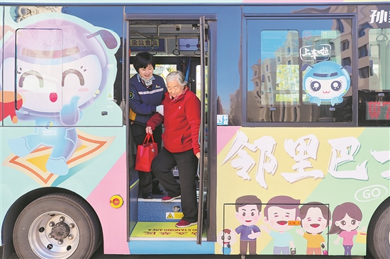 11月30日,“鄰里巴士”駕駛員攙扶老人下車。近日,山東青島西海岸新區(qū)真情巴士集團(tuán)開(kāi)通了“鄰里巴士”公交專線。“鄰里巴士”采用“社區(qū)提供場(chǎng)地+公交提供服務(wù)”的合作方式,為居民提供精準(zhǔn)化公交服務(wù)。新華社發(fā)(張進(jìn)剛 攝)