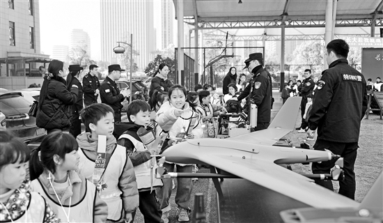 12月15日,浙江省臺州市仙居縣公安局與華東師范大學附屬仙居學校一同組織開展了“警營開放日 我是小警察”活動,把課堂從教室搬到警營,讓學生們近距離體驗警用裝備、警務工作和多彩的警營文化。圖為小學生在仙居縣公安局參觀警用裝備。