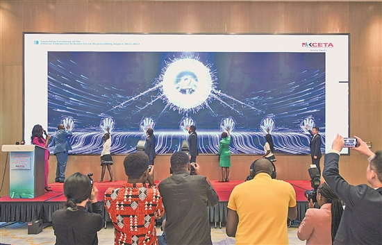 圖為近日在肯尼亞首都內(nèi)羅畢拍攝的《2022-2023肯尼亞中資企業(yè)社會(huì)責(zé)任報(bào)告》發(fā)布會(huì)現(xiàn)場(chǎng)。