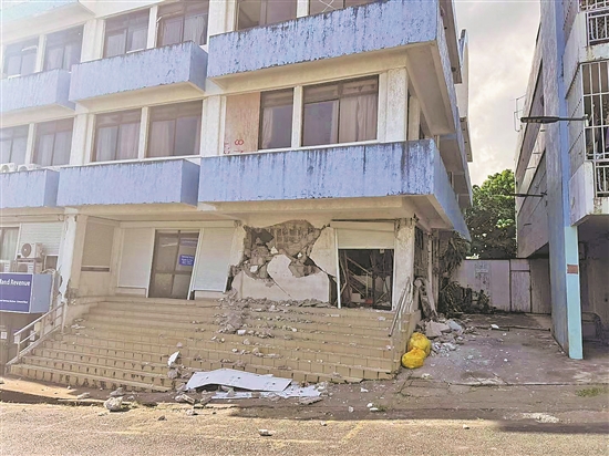 圖為當(dāng)?shù)貢r(shí)間12月17日,在瓦努阿圖首都維拉港,一處建筑物在地震中受損。 新華社發(fā)