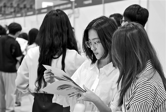 4月19日,求職者在現場了解招聘信息。