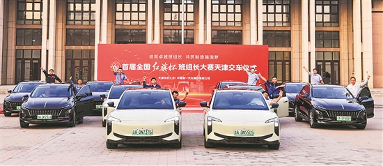 首屆全國“紅旗杯”班組長大賽決賽,天津選手在全部10個賽道中取得4個第一。圖為獲獎交車儀式。張磊 攝