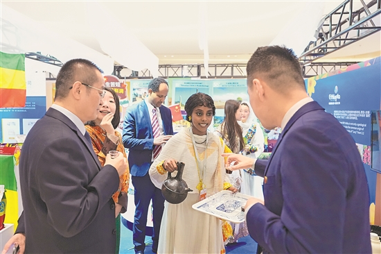 2月4日,在“共享大市場·出口中國”2026年首場活動暨北京國際精品薈的進口商品推介區,參觀者在品嘗展出的埃塞俄比亞咖啡。