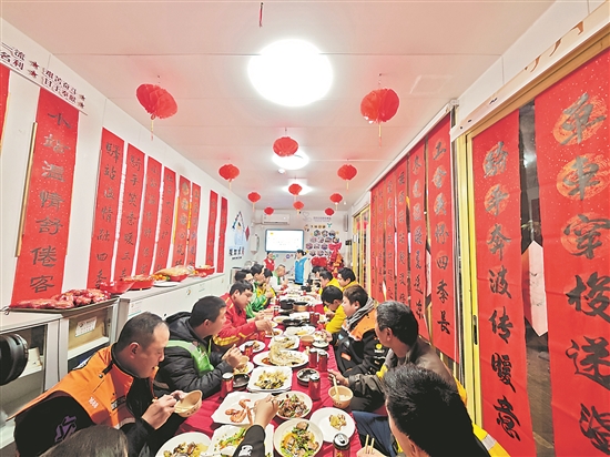 ②日前,“情暖勞動者·歡樂在鵬城”深圳市龍崗區(qū)總工會2026年新春年夜飯舉行。在南新社區(qū)暖蜂驛站分會場,外賣騎手、快遞小哥圍坐共享“圍爐家宴”。本報記者 劉友婷 本報通訊員 張灝婷 攝
