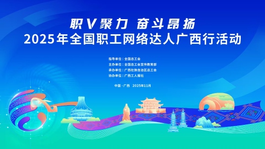 2025年“職V聚力 奮斗昂揚”職工網絡達人廣西行活動于11月4日在廣西南寧啟動。本次活動由全國總工會指導,全國總工會宣傳教育部主辦,廣西壯族自治區總工會承辦,廣西工人報社協辦。11月4日9:00,中工網首頁、微博、視頻號同步播出。
